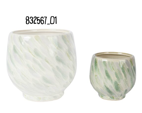 Cachepot con Piedini Rigato Verde D11x12,5cm in Ceramica – Kaemingk