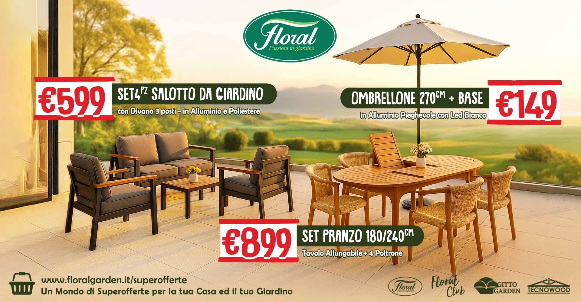 Arredare il proprio giardino non è una moda passeggera: è una scelta di benessere. Che si tratti di un piccolo terrazzo o di un grande spazio verde, Floral Garden ti aiuta a trasformarlo in un ambiente che parla di te, accogliente, funzionale e durevole nel tempo.