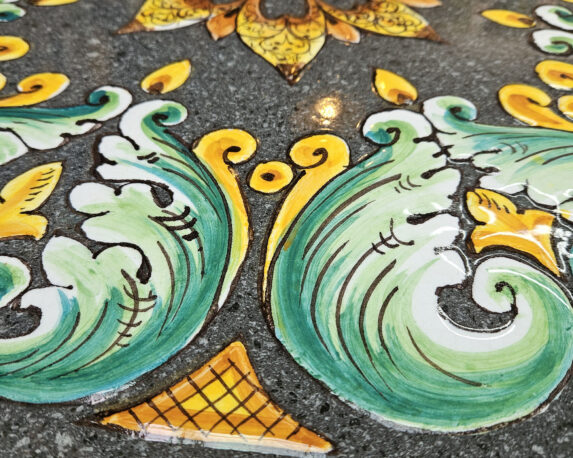 - Materiale: Pietra lavica, Ceramica e Ferro