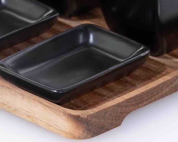 Set 7 Pz Ciotole per Aperitivo Nero 25×15,5×5,5cm in Legno e Ceramica
