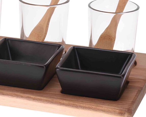 - Materiale: Legno di acacia, Porcellana e Vetro