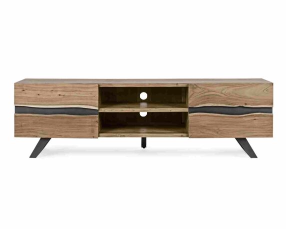 Mobile Porta TV con 2 Ante Aron 190x43x56cm in Legno di Acacia e Acciaio – Bizzotto