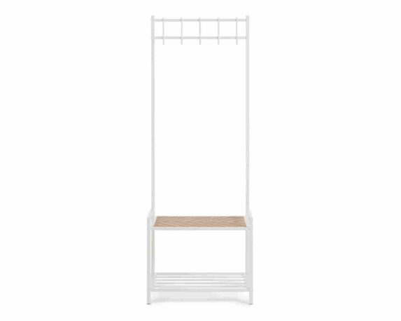 Appendiabiti 2 Piani e 5 Ganci Haldor Bianco e Naturale 64,5×37,5x180cm in Acciaio e MDF – Bizzotto