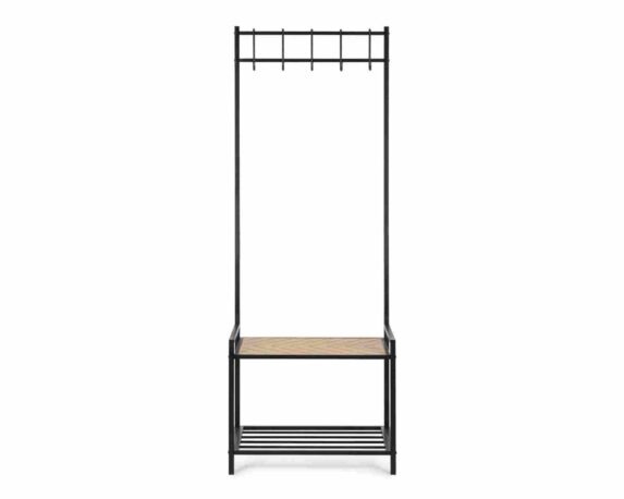 Appendiabiti 2 Piani e 5 Ganci Haldor Nero e Naturale 64,5×37,5x180cm in Acciaio e MDF – Bizzotto