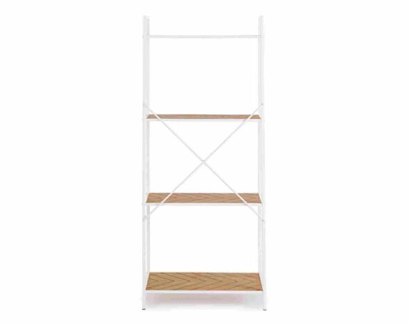 Libreria 4 Piani Haldor Bianco e Naturale 60,5x36x150cm in Legno di Gomma e Acciaio – Bizzotto