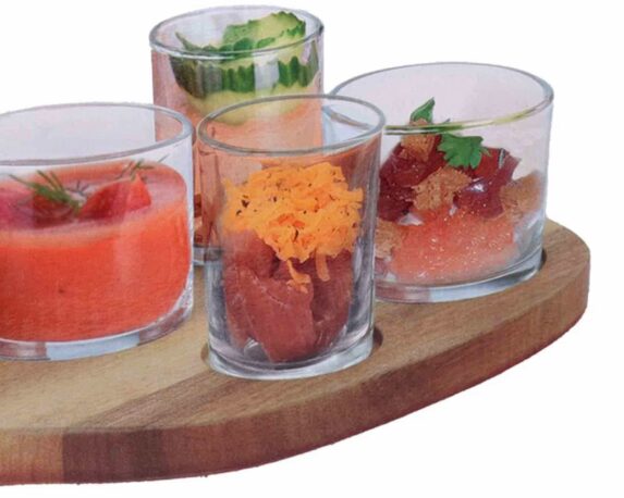 Aperitivo con Base Ciotole e Manico 30x17x6cm in Legno di Acacia e Vetro