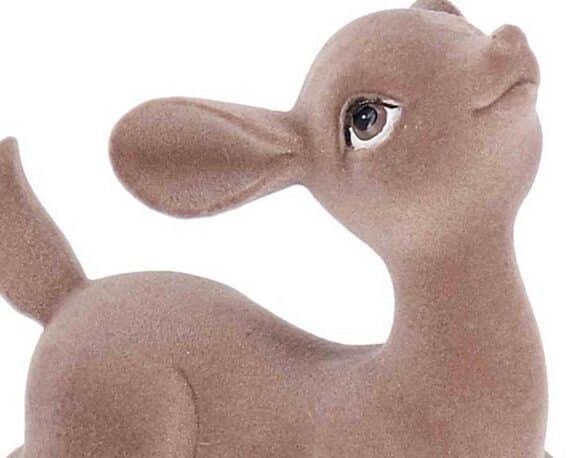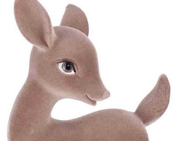 Decorazione Renna Flocking Seduto Champagne 10x6x8,5cm in Resina – Bizzotto