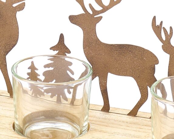Decorazione Portacandela Renne 28x11cm in Legno, Vetro e Metallo