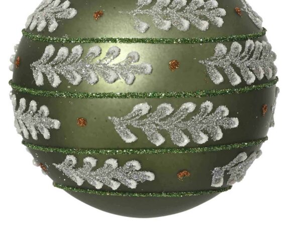 Sfera Verde e Bianco con Foglie e Righe Glitterate Assortito D8cm in Vetro