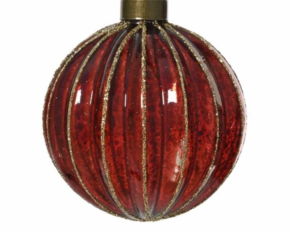 Sfera Costine ROsso con Glitter Decorati Decorativi D8cm in Vetro