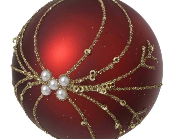 Sfera Rossa con Perle e Glitter Assortito D8cm in Vetro