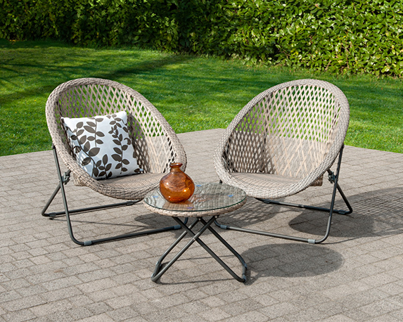 Set Salotto Tavolino Merrigan + 2 Poltrone Antracite in Alluminio e Polipropilene – Bizzotto
