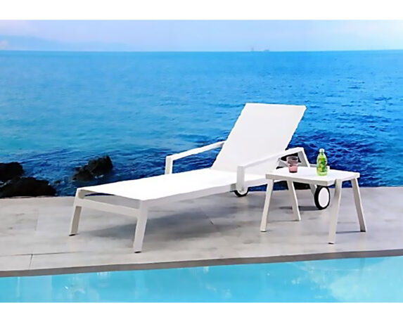 Lettino con Ruote Cleopas Bianco in Alluminio e Textilene – Bizzotto