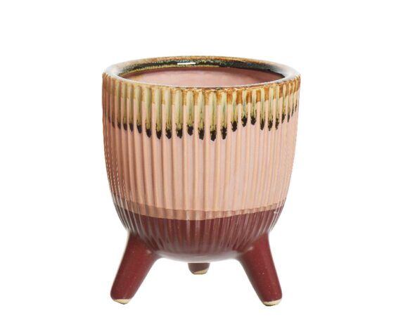 Cachepot con Piedini Rigato Rosa e Bordeaux D14,5x16cm in Ceramica – Kaemingk