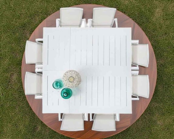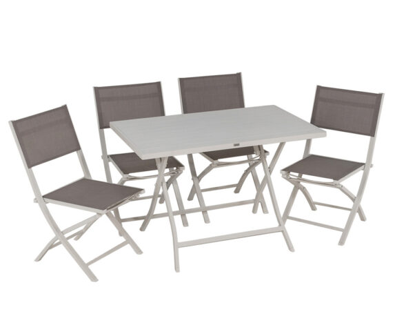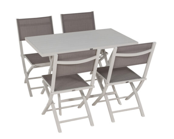 Set Pranzo Konnor Allungabile 160/110x160h + 4 Poltrone Bianco in Alluminio e Textilene – Bizzotto