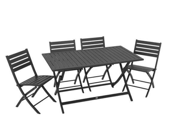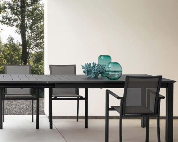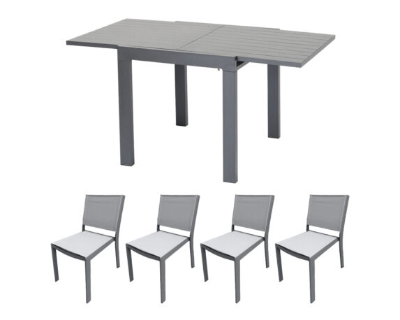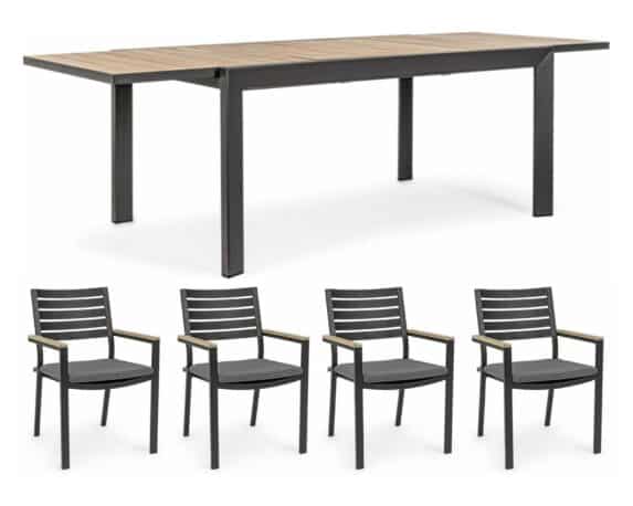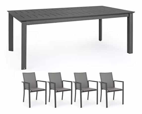 Set Pranzo Konnor Allungabile 160/240x100h + 4 Poltrone in Alluminio e Textilene Antracite – Bizzotto