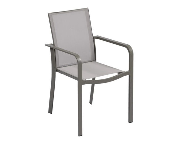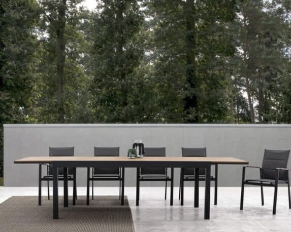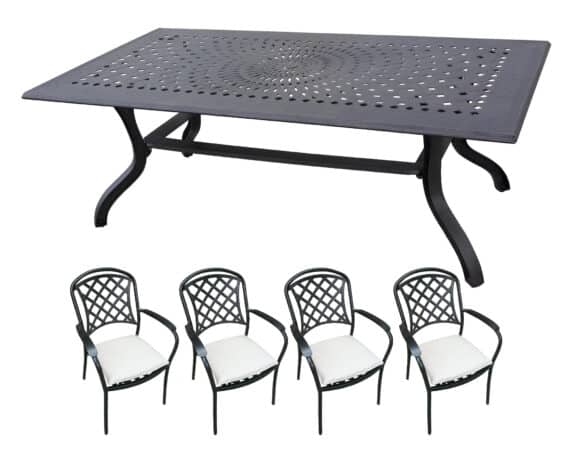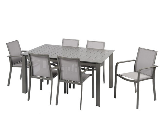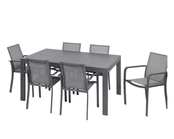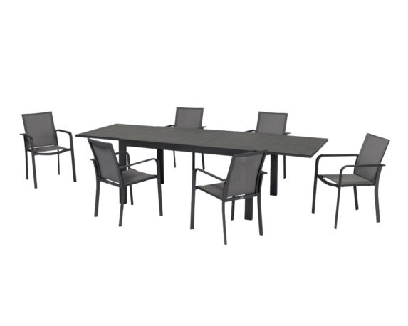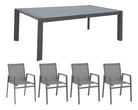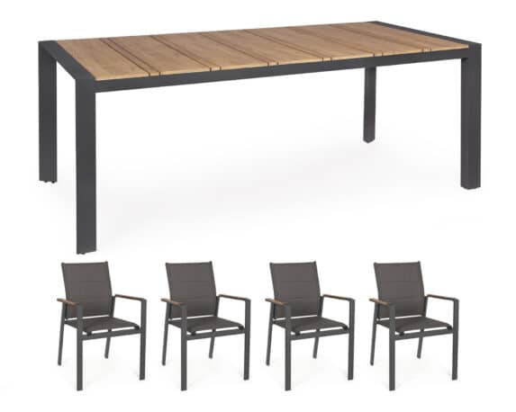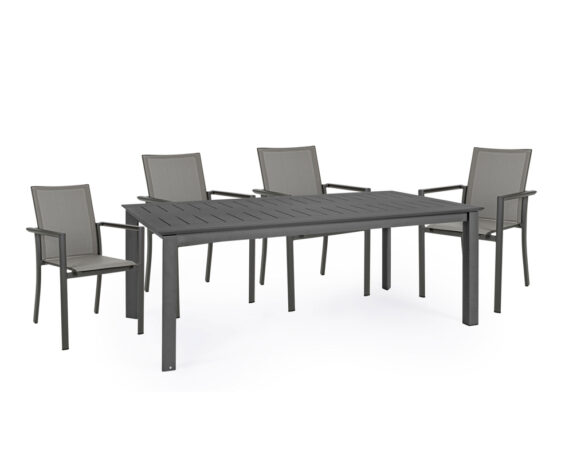 Set Pranzo Tavolo Elias 198×100 Antracite + 4 Sedie Kubik con Braccioli in Alluminio e Textilene – Bizzotto