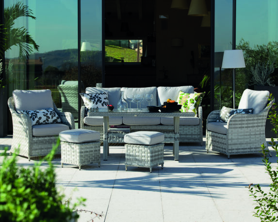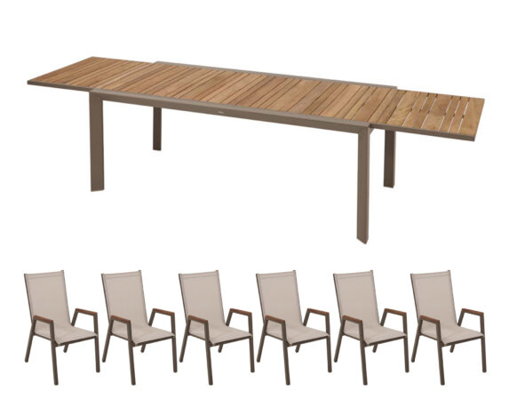 Set Pranzo New Butterfly Taupe 200/300x110cm + 6 Poltrone New Croisette in Alluminio e Textilene