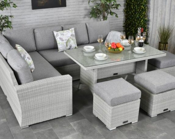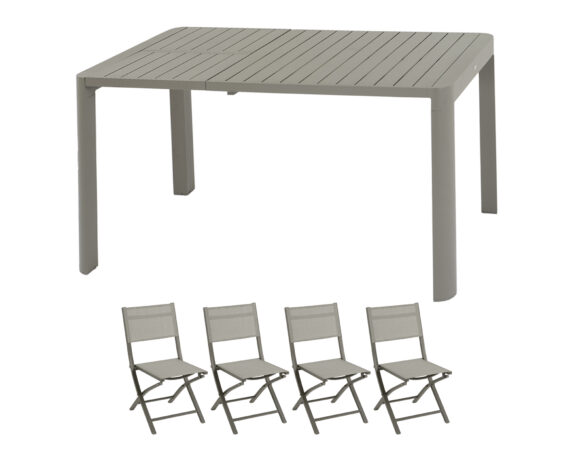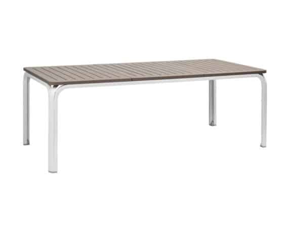 Set Pranzo Tavolo Alloro 210/280×100 + 6 Sedia Bianco e Tortora in Alluminio – Nardi