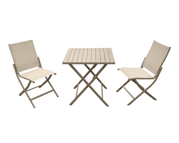 Set Balcone Peggy TX GC + 2 Sedie Taupe in Alluminio