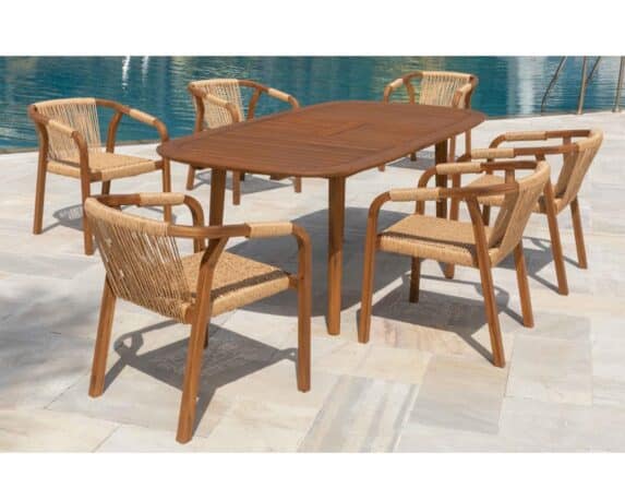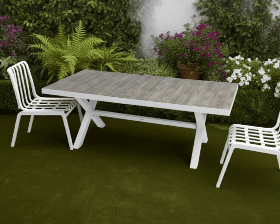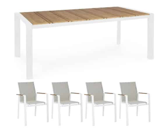 Set Pranzo Tavolo Elias 198×100 Bianco + 4 Sedie con Braccioli in Alluminio e Textilene – Bizzotto