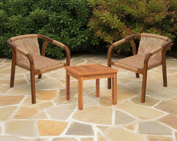 Set Balcone Tavolo Samos + 2 Sedie Etienne in Acciaio e Ceramica – Bizzotto
