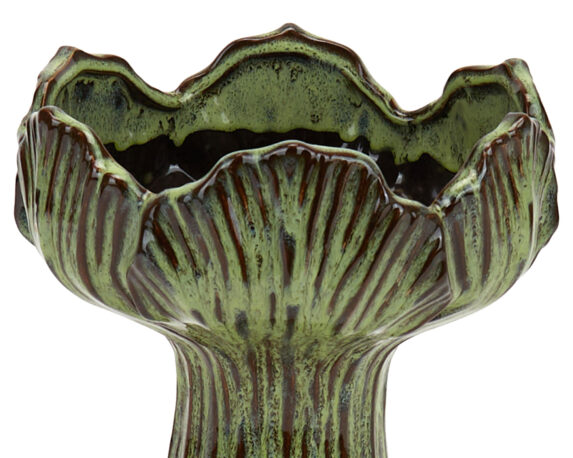 Vaso Lavorato Decorativo Verde Oliva 25,5cm in Ceramica