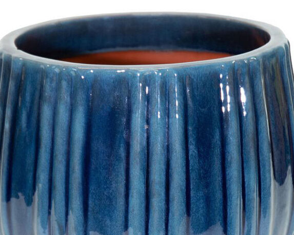 Cachepot con Righe Smaltato Blu Intenso D30x26,5cm in Ceramica – Mega Collections