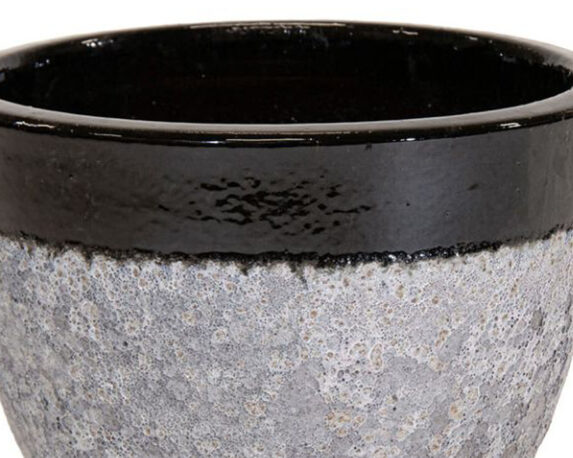 Cachepot Bordo Smaltato Grezzo Grigio e Nero Medio D38x30cm in Ceramica – Mega Collections