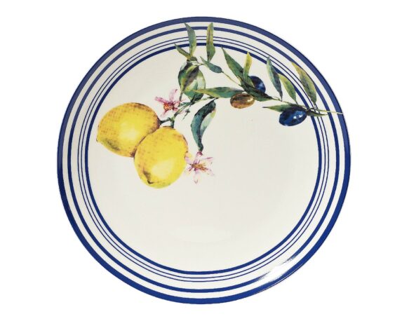 Piatto Piatto Blu e Bianco Deco Limoni in Porcellana – Kaemingk