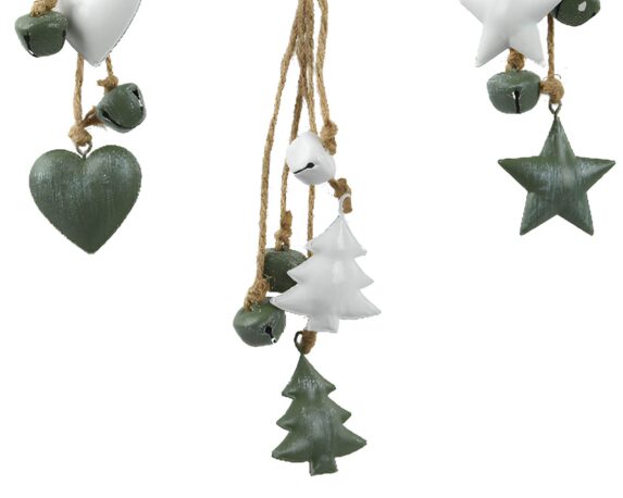 Pendente Fascio con Glitter Cuore Albero Stella 1,2×4,5x27cm in Ferro