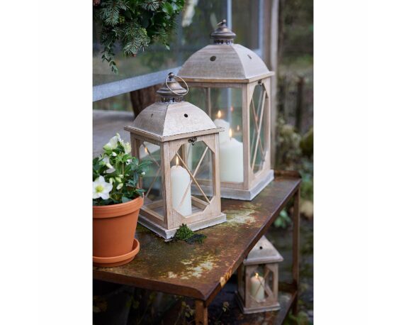 Lanterna Piccola Vintage Oro Antico 14x14x32cm in Abete