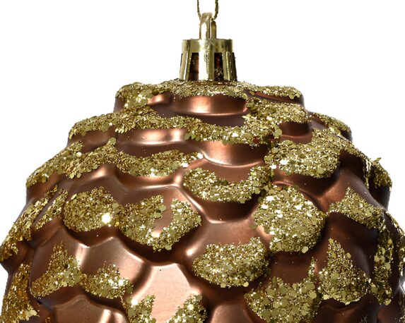Sfera Pigna Effetto Velluto con Glitter Rosso, Espresso e Rame Assortito D8cm in Plastica