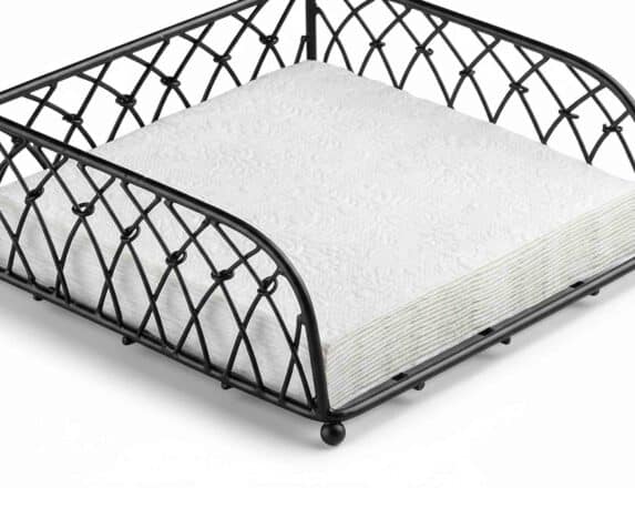 Porta Tovaglioli Annodato Nero Grande 18x18x6,5cm in Metallo