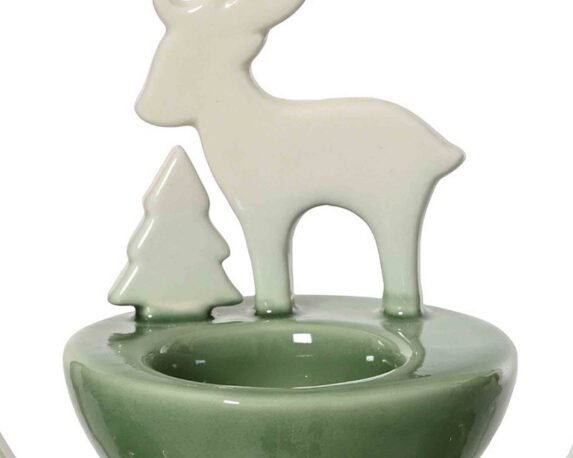 Decorazione Portacandela Bianco e Verde con Alberi, Renne o Stelle 8,5×8,5x9cm in Ceramica
