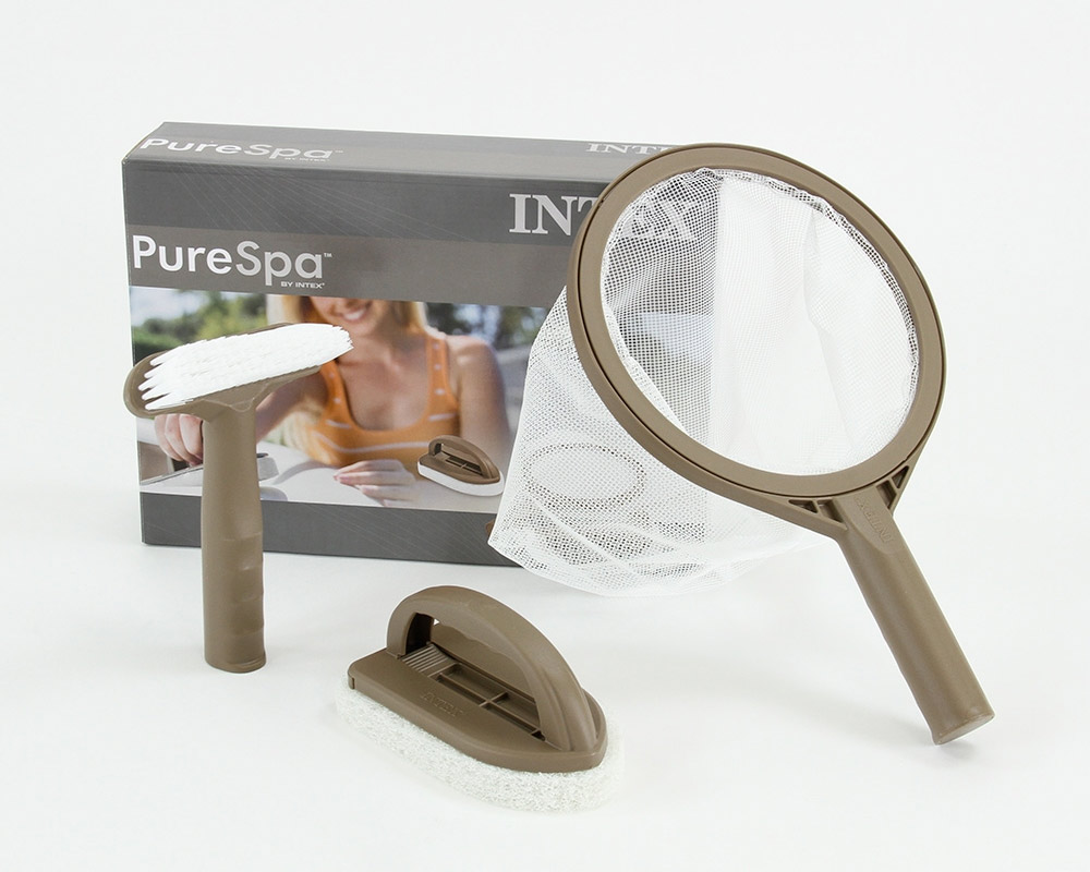 Quest kit manutenzione Spa di alta qualità vi permette di mantenere pulita la Intex Jacuzzi con semplicità e accuratezza. Per godervi ancora meglio la spa. Con l’ausilio della spazzola curva è più comodo lavare le pareti interne, per mantenerle pulite e lisce. Il retino durevole e lo scrubber facilitano la rimozione di polvere e sporcizia.