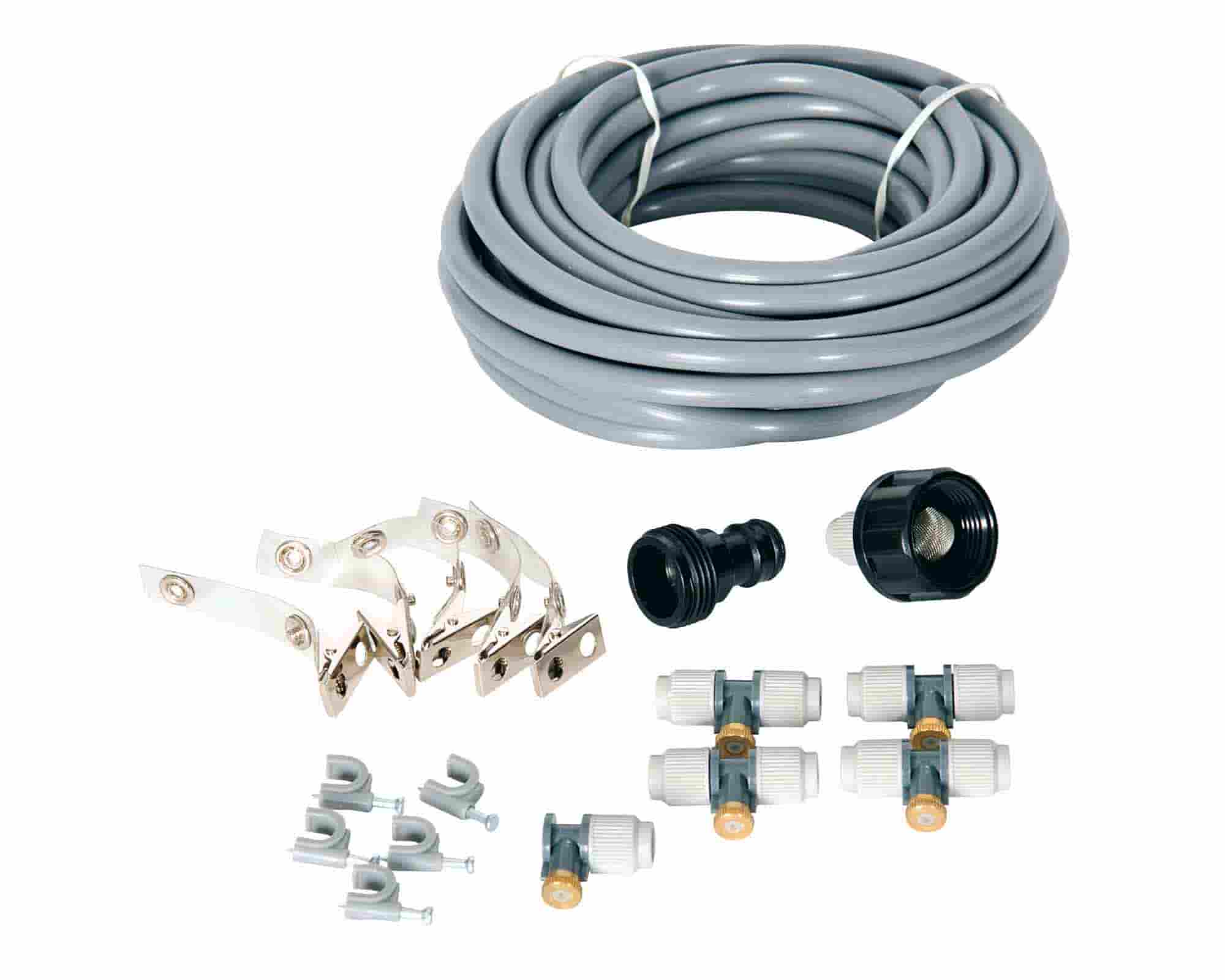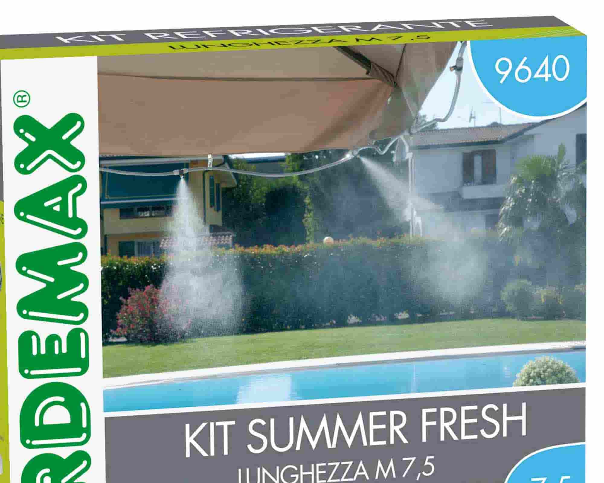 Il Kit Refrigerante Summer Fresh del brand Verdemax è la soluzione ideale per creare un piacevole effetto refrigerante durante le calde giornate estive. Progettato per uso esterno, il kit nebulizzatore diffonde una leggera e rinfrescante nebulizzazione d’acqua, migliorando il comfort di gazebo, ombrelloni e spazi in giardino.