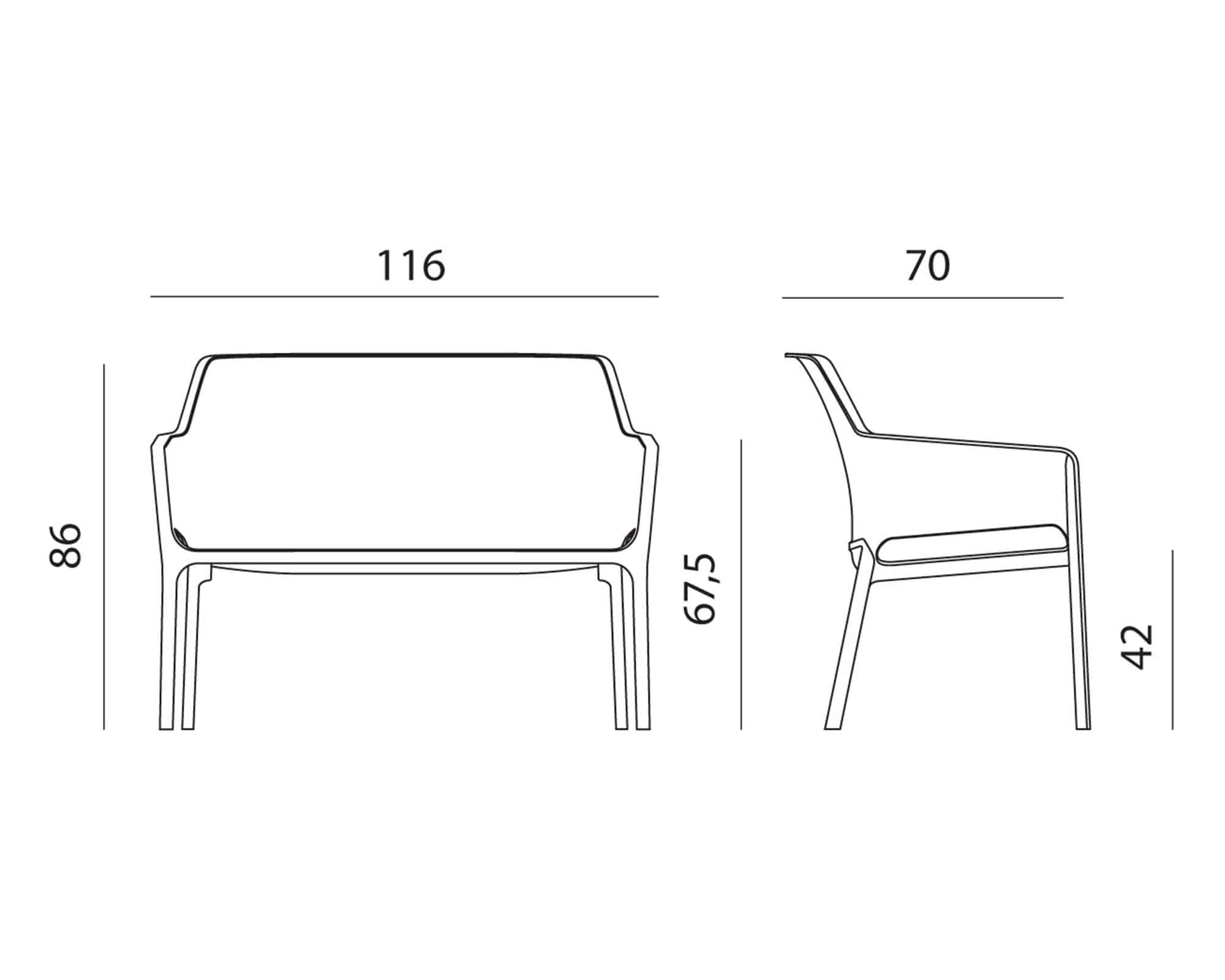 - CM: 116×70×86h