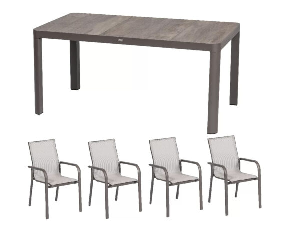 Le sedie hanno un design semplice e moderno, con la finitura antracite sulla struttura in ferro. Questa combinazione di colori dona al set un aspetto elegante e armonioso, perfetto per qualsiasi stile di arredamento.