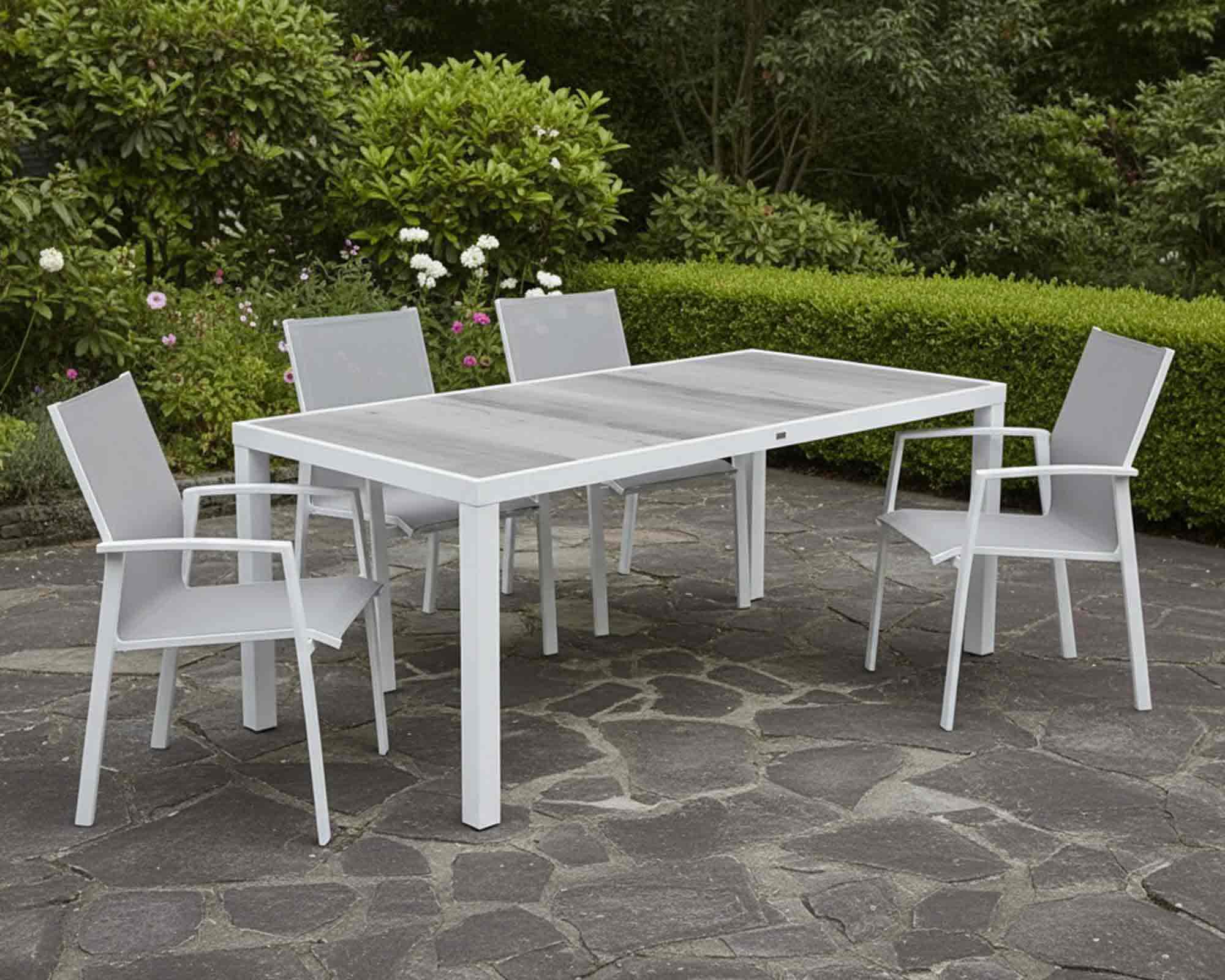 Set Pranzo Lory 185×95 + 4 Poltrone Spring in Alluminio e Textilene