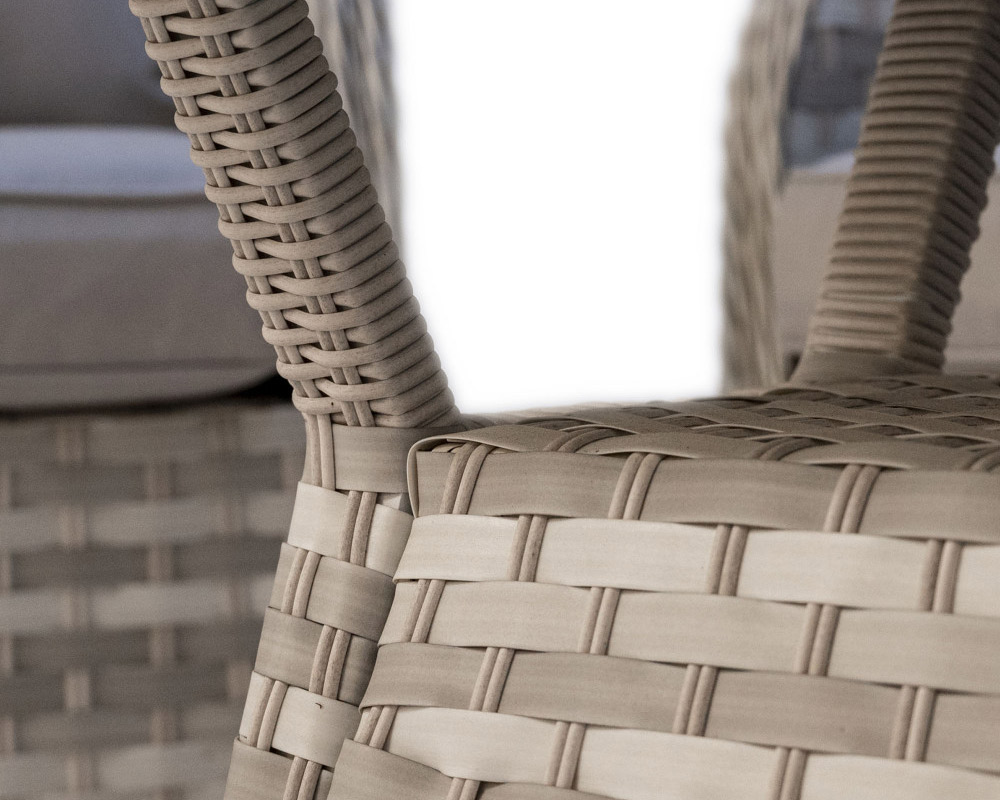 Le poltrone in fibra sintetica sono confortevoli e comode, perfette per godersi un pranzo all’aperto in totale relax. La fibra sintetica è un materiale resistente alle intemperie e agli agenti atmosferici, che non richiede particolari attenzioni per la manutenzione e la pulizia. La struttura delle poltrone è in alluminio, resistente e leggera, e il sedile e lo schienale sono imbottiti per garantire un maggior comfort.