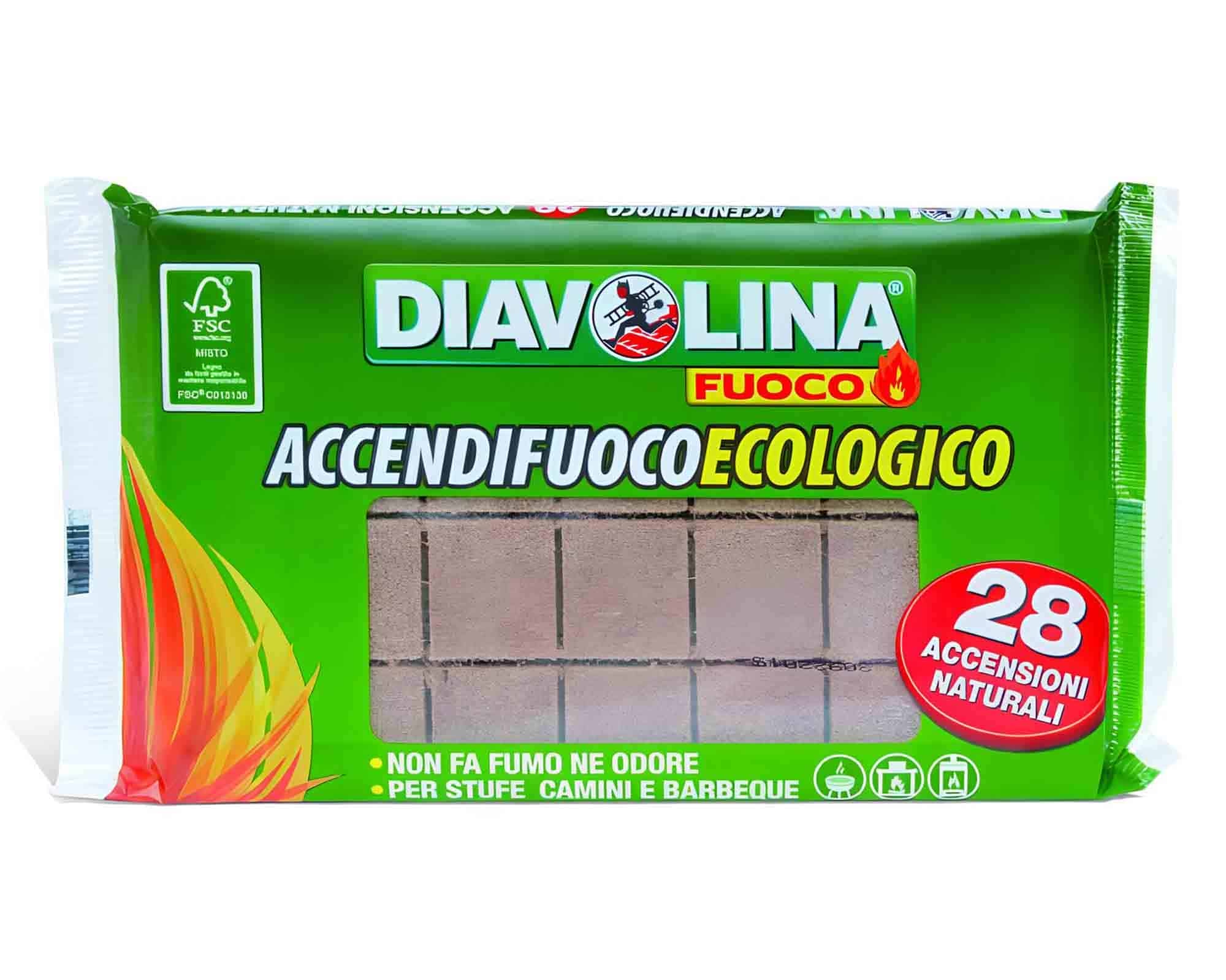Il Diavolina Accendifuoco Naturale è un accendifuoco ecologico realizzato con legno certificato FSC, proveniente da foreste gestite in modo responsabile, garantendo sostenibilità e rispetto per l’ambiente. Grazie alla sua composizione a base di energie rinnovabili, questo accendifuoco consente di avviare camini, stufe e barbecue in modo pratico, sicuro e senza cattivi odori.
