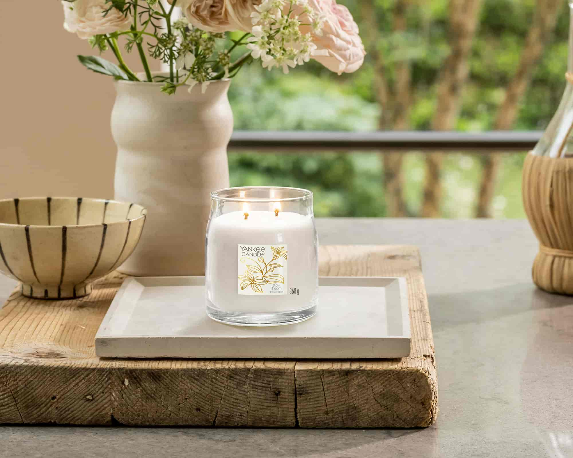 La Giara Candela Media Signature Slow Bloom è un invito a rallentare il ritmo e abbandonarsi alla quiete di una passeggiata in un giardino fiorito, perfetta per trasformare ogni ambiente in un angolo di pace e bellezza naturale. Il profumo delicato e avvolgente del sandalo e del gelsomino, combinato con note floreali di rosa e ylang-ylang, evoca la luce soffusa di un pomeriggio tranquillo, dove la pioggia delicata accarezza i petali e fa sbocciare lentamente ogni fiore.