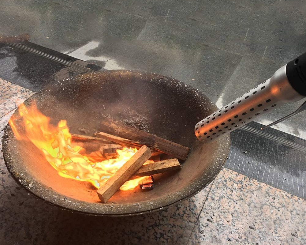 Getta via i liquidi infiammabili, metti da parte fiammiferi, ciminiere di accensione, giornali oleosi. Ammira il nuovo accenditore elettrico di „Texas Club“! Con un cavo lungo 3,2m per non limitare i tuoi movimenti ed una potenza di 2000W è in grado, in soli 20 secondi, di accendere il tuo Kamado Bono! Naturalmente il suo potente getto di aria calda è adatto anche per accendere il tuo camino o il carbone già utilizzato