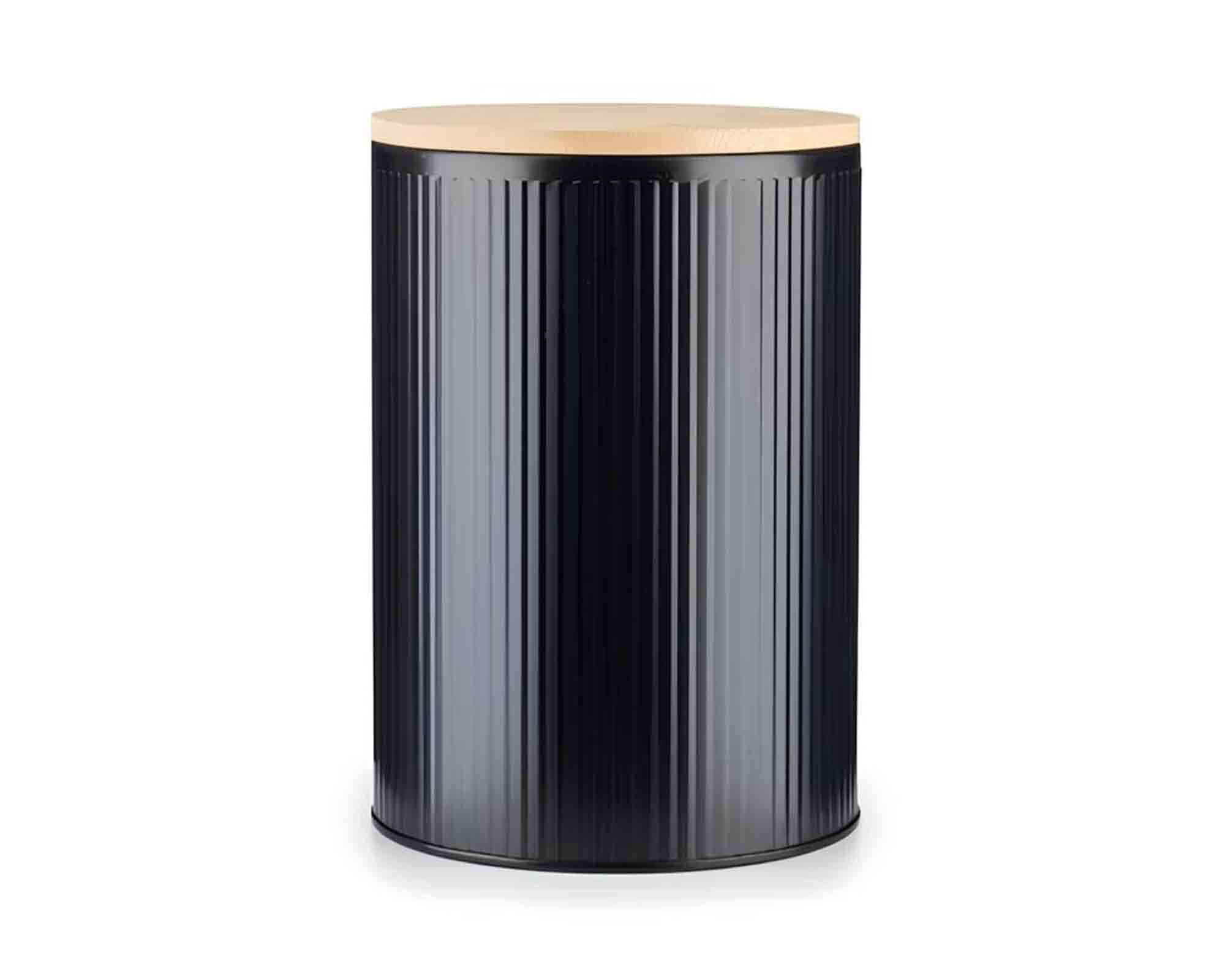 La struttura in latta resistente protegge gli alimenti da luce e umidità, mentre il coperchio in bamboo naturale aggiunge un dettaglio caldo e raffinato. Dotato di una chiusura pratica e sicura, è perfetto per conservare alimenti secchi come zucchero, farina, tè, biscotti o caffè.