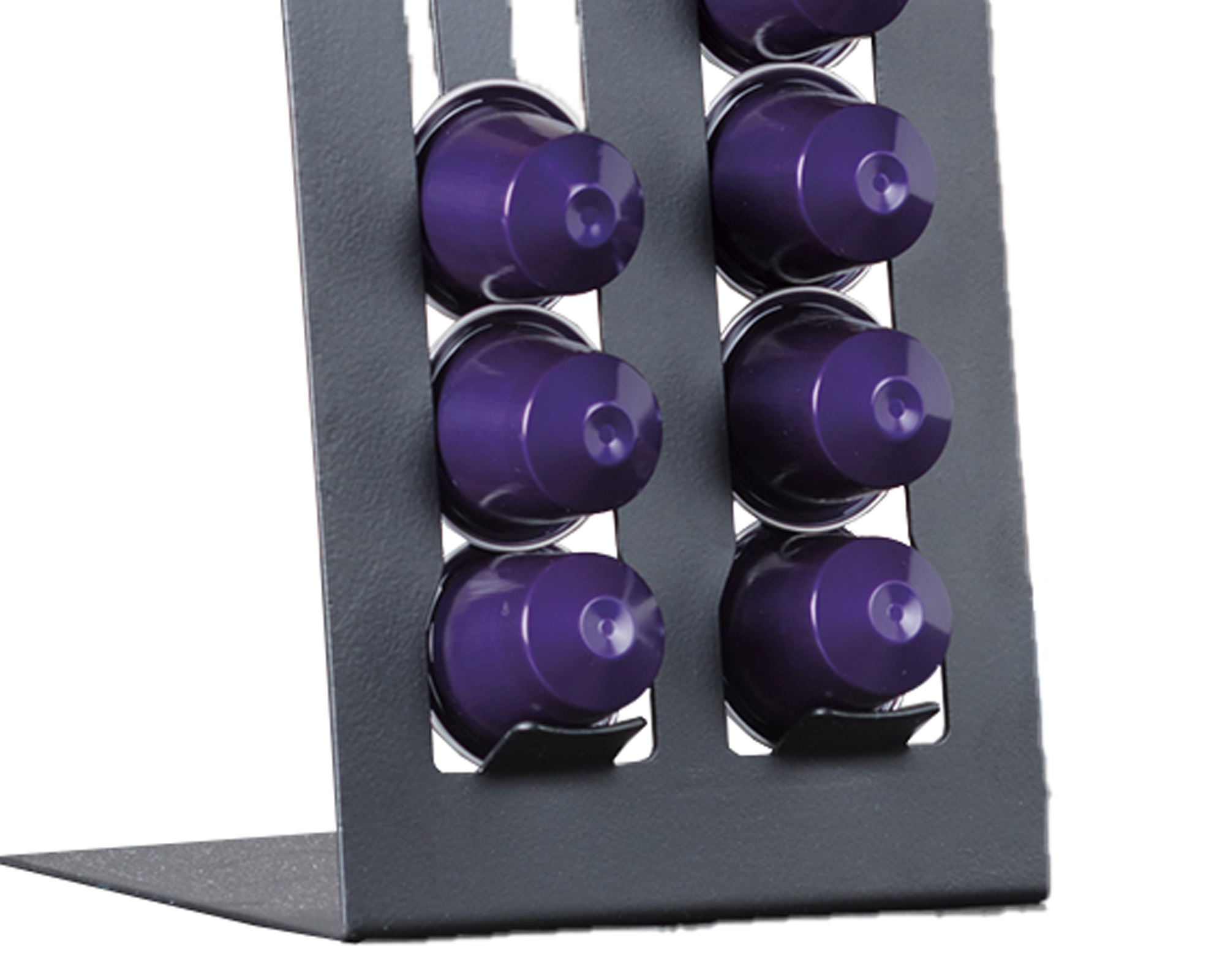 Porta cialde verticale è dotato di 2 colonne che permettono di organizzare le tue capsule preferite per tipologia e marca. La sua struttura semplice garantisce un accesso facile e comodo alle colonne del supporto.