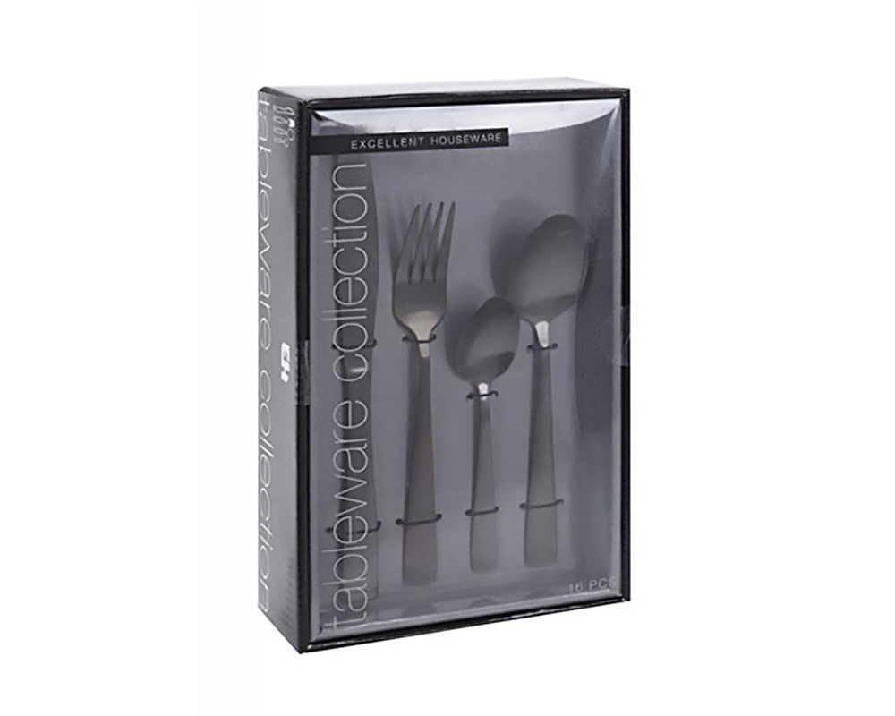Set 16 Pz Posate da Tavola Nero in Acciaio