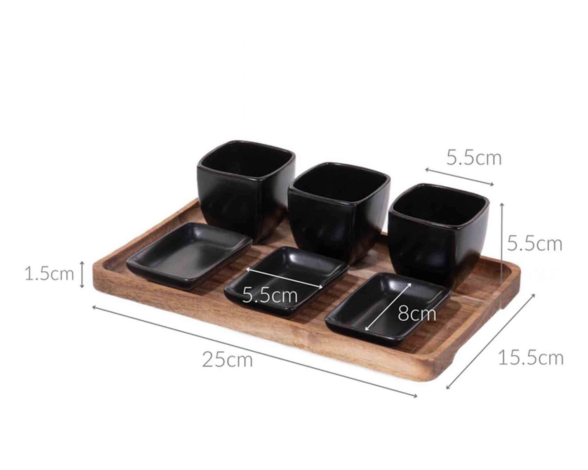 Set 7 Pz Ciotole per Aperitivo Nero 25×15,5×5,5cm in Legno e Ceramica