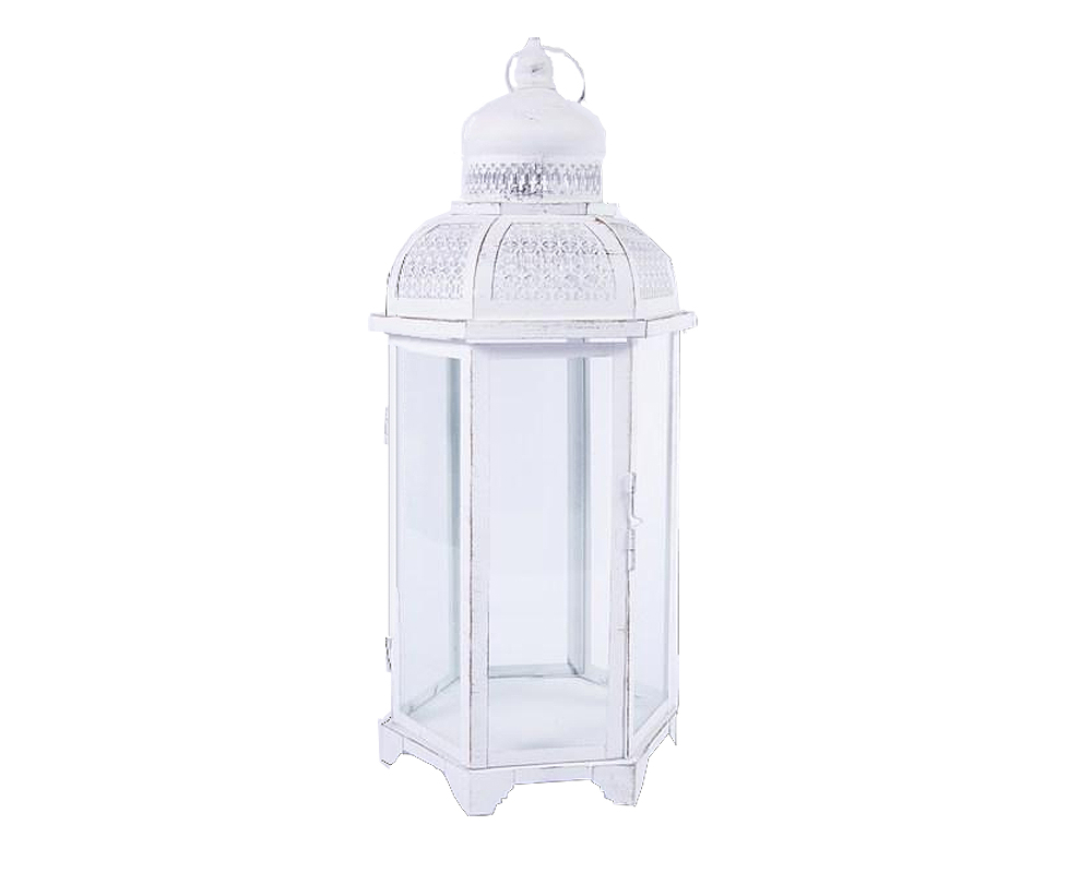 Lanterna esagonale large mille e una notte decapata bianca metallo