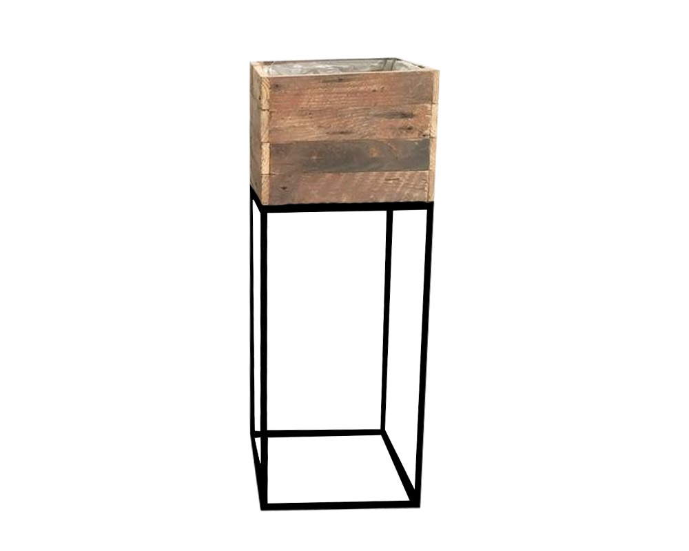 Alzata Porta Pianta Quadrata Large in Legno e Ferro